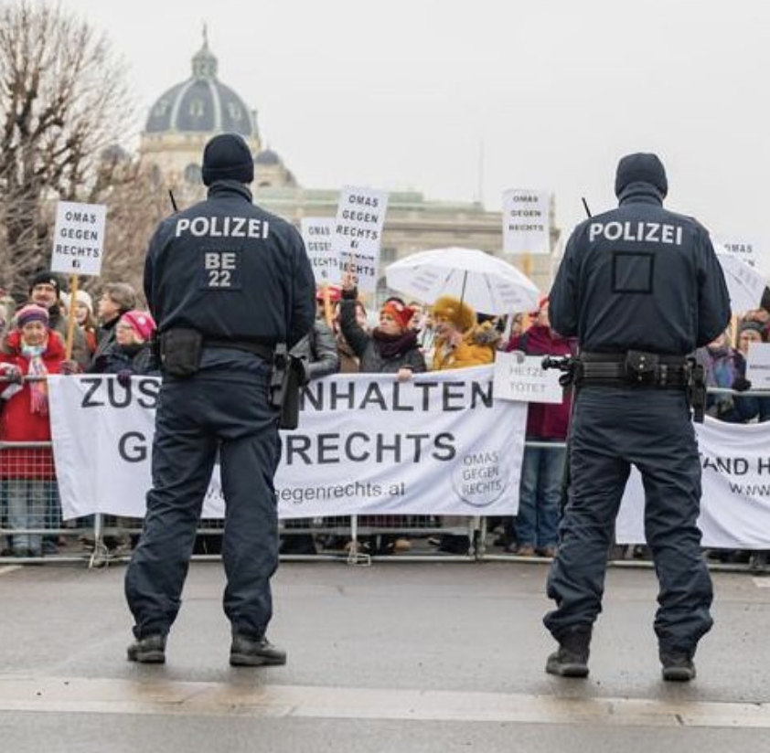 За митингом наблюдало большое количество полиции. Хофбург и Федеральная канцелярия были ограждены заграждениями. Никаких инцидентов не произошло, и атмосфера оставалась мирной. Незадолго до 13:00 час последние демонстранты, которые ранее держали транспаранты с надписями «Nie wieder Volkskanzler» или «Wir kicken Kickl raus», ушли.