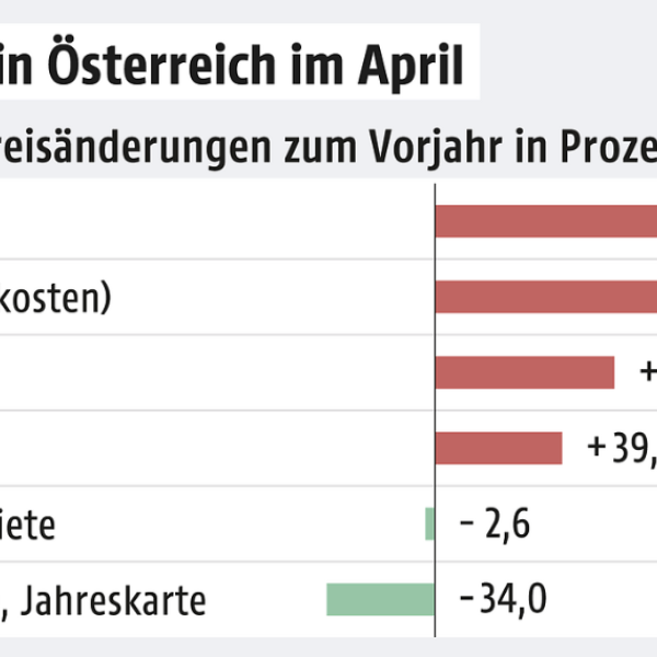 Расходы на транспорт и жильё составляли три пятых инфляции. По сравнению с предыдущим месяцем мартом уровень цен вырос на 0,3 %. “Наряду с топливно-энергетическими продуктами рост цен на продукты питания в настоящее время также является причиной роста инфляции», — заявил генеральный директор Статистического управления Австрии Тобиас Томас.