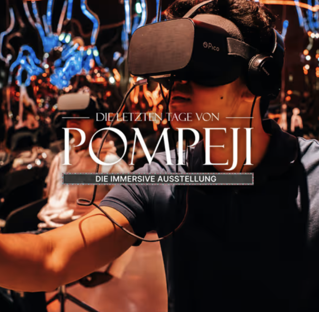 ✴️ “Die letzten Tage von Pompeji”, посвящённая последним дням Помпеи. Выставка предлагает 🌋отправиться в путешествие во времени в Помпеи и окунуться в повседневную жизнь помпейцев до извержения Везувия. Вы сможете 🏛️ прогуляться по старинным улицам и осмотреть Виллу Тайн и даже ⚔ почувствовать себя гладиатором в переполненном амфитеатре и стать свидетелем трагического конца, когда извергается Везувий и древний город покрывается пеплом.