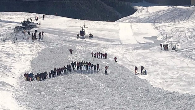 «Хотя высота, откуда пошла лавина, небольшая, площадь пострадала огромная. Поэтому мы вынуждены задействовать больше горных спасателей» – говорит начальник пункта полиции Герт Грабмайер.