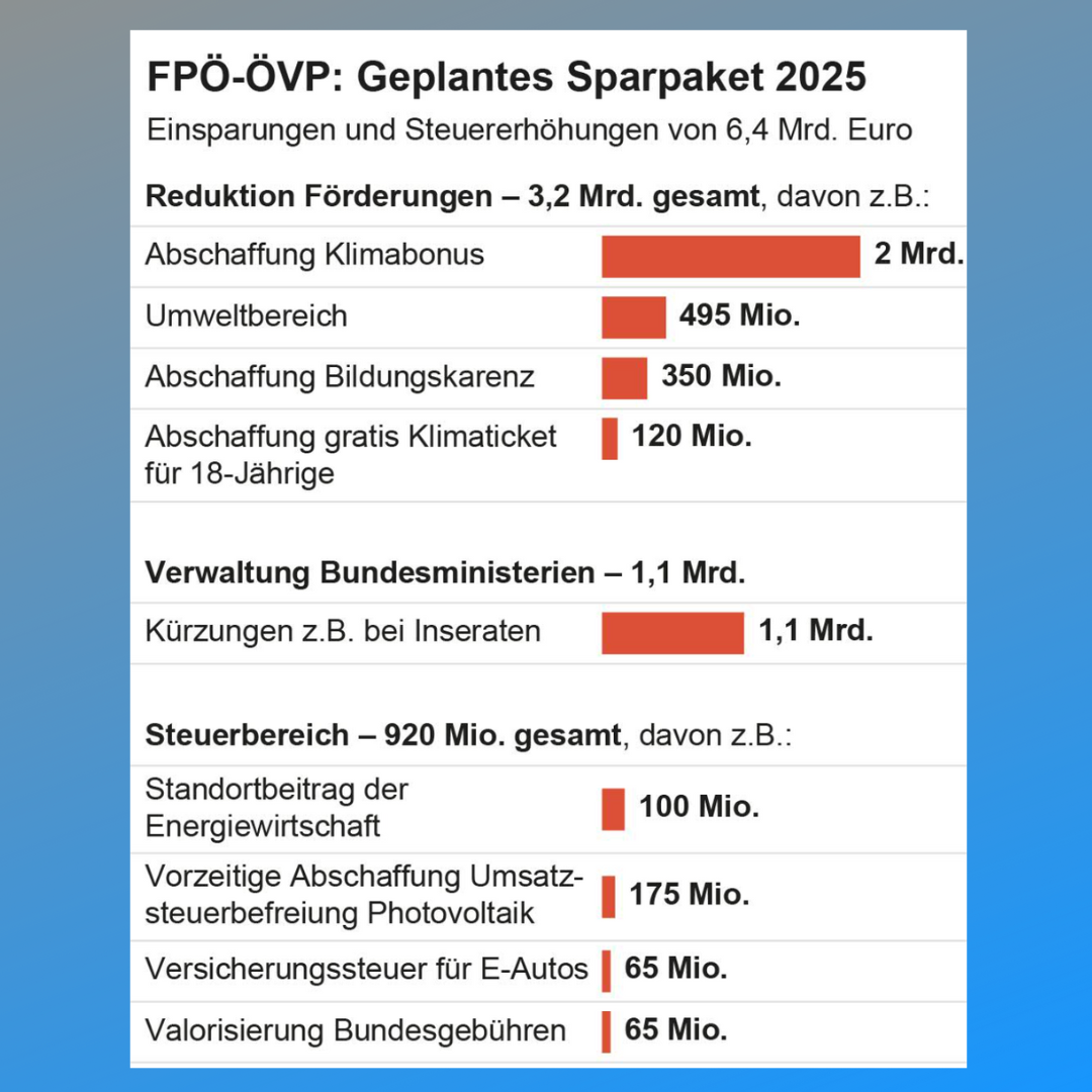 В четверг коалиция FPÖ/ÖVP представили детали своего пакета, с помощью которого они хотят сэкономить около 6,4 миллиардов евро.