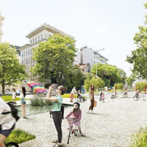 Асфальтовое покрытие должно уступать место обширным зонам растений, открытым водным пространствам, затененным местам для сидения и - в самой западной части зоны - может быть создана велосипедная площадка. «Там дети могли попрактиковаться в катании на велосипеде в городе - например, как не попасть на трамвайные пути».