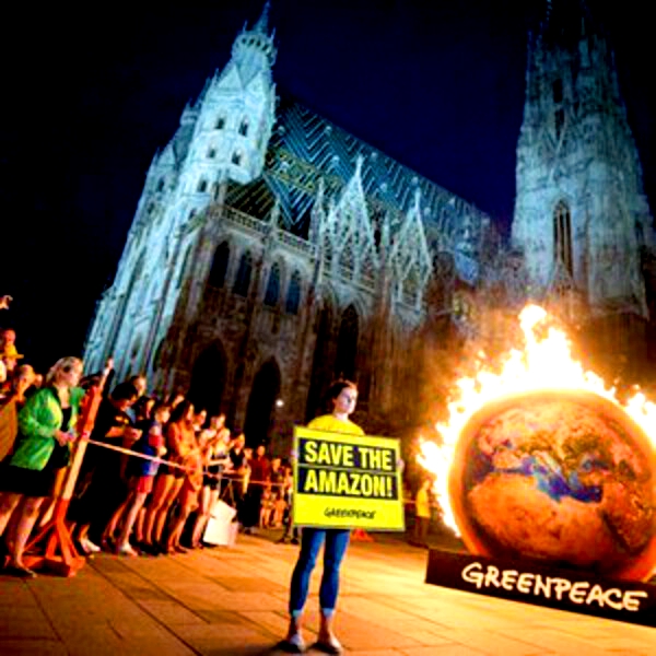 Активисты Greenpeace подожгли модель Земли на Stephansplatz
