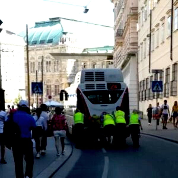 В среду днем городской автобус линии 2А прекратил движение из-за технического дефекта. Но сотрудники Wiener Linien объединенными усилиями переместили его в сторону.