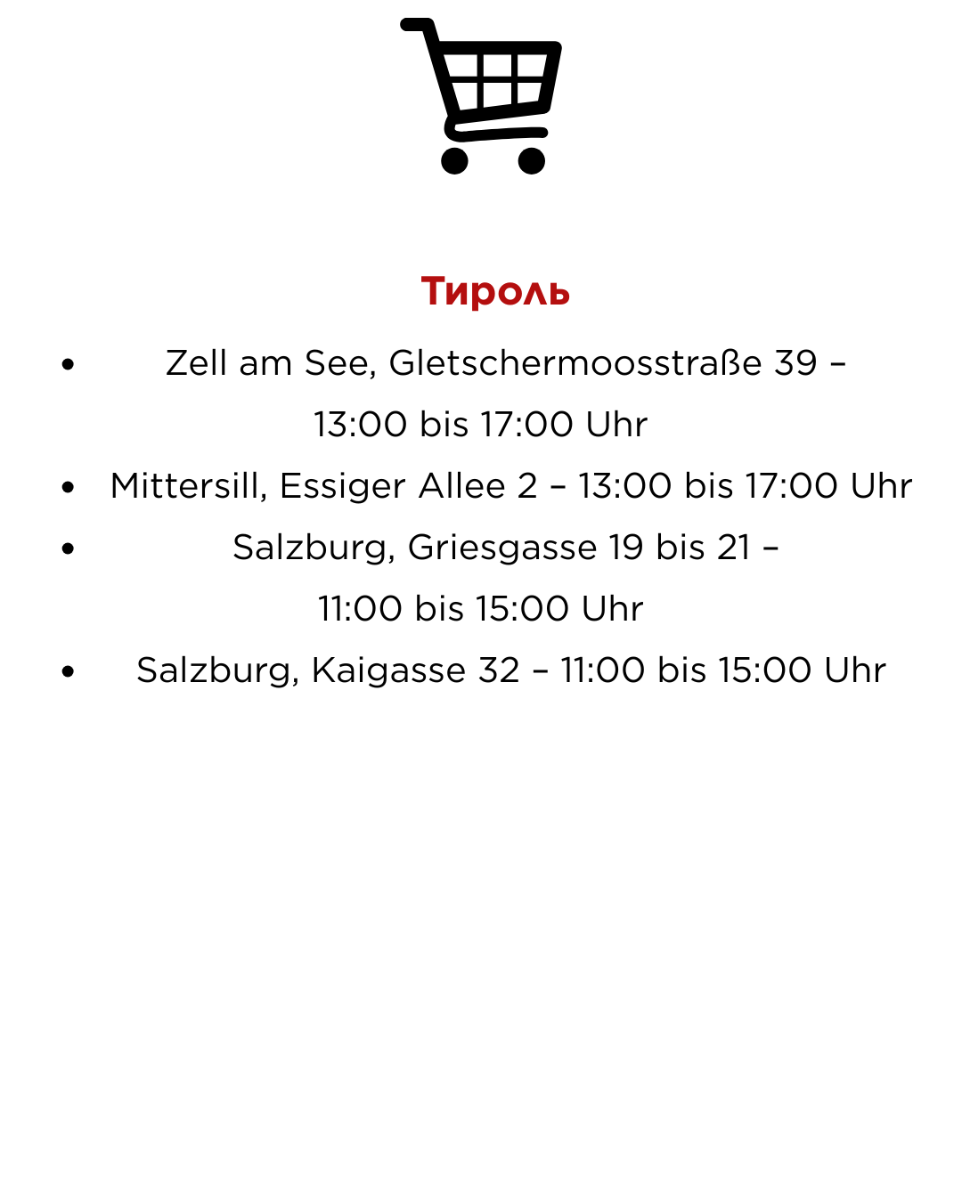 Компания SPAR сообщает, что отдельные магазины на железнодорожных вокзалах – например, в Вене, Линце или Граце – а также на горнолыжных курортах Форарльберга, Тироля, Зальцбурга и Каринтии открыты.