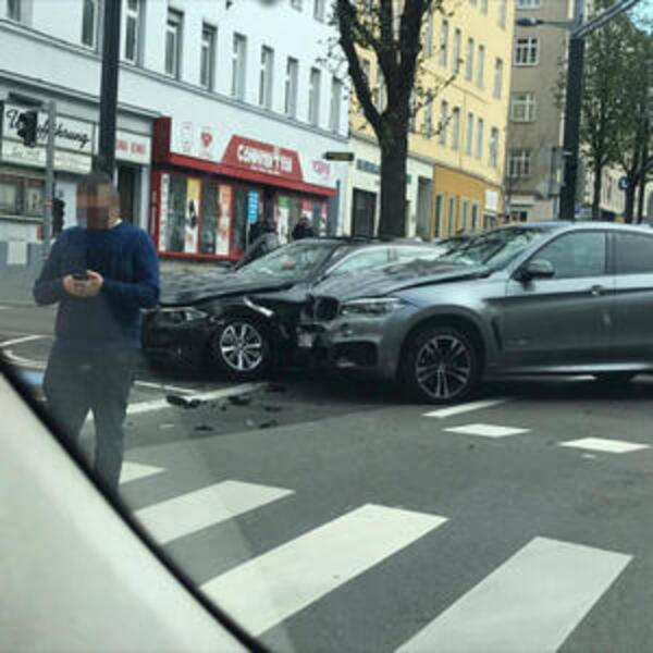 Два неудачника встретились в воскресенье днем в Вене- Фаворитен: водитель серого BMW X6 врезался в черный BMW 5 на Фаворитенштрассе на перекрёстке, регулируемом светофором.