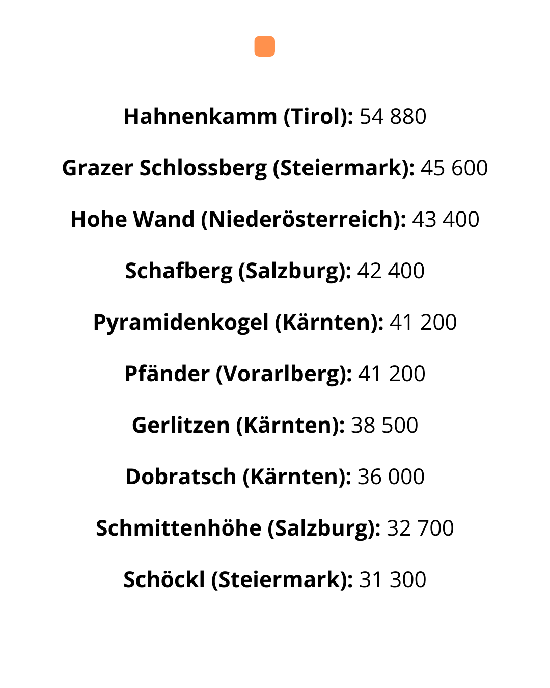 Второе место занимает Арльберг, всемирно известный своими эксклюзивными курортами и горнолыжными трассами. Вершина, расположенная на границе Тироля и Форарльберга, имеет более 190 000 публикаций.