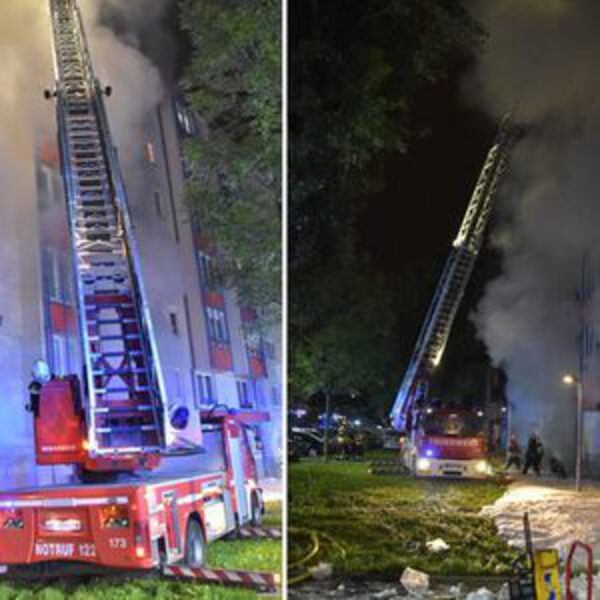До приезда скорой помощи лестница уже была полна дыма и людям было невозможно спускаться по ней. Пожарная служба смогла обеспечить безопасность жителей с помощью защитных масок и надувной лестницы.
