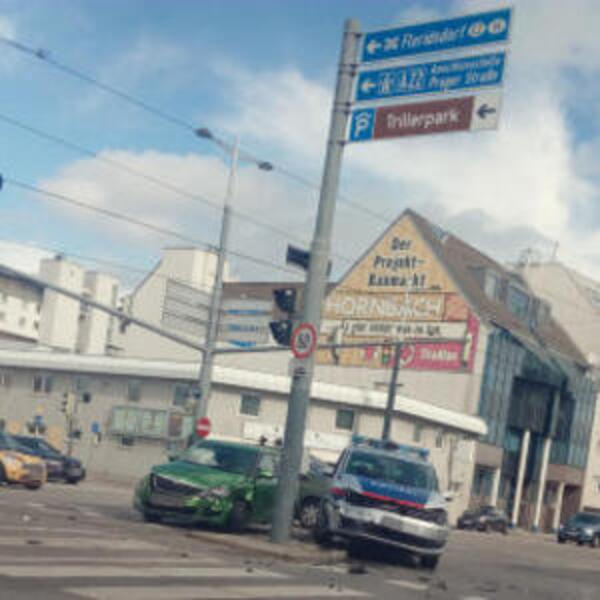 В субботу утром полицейский автомобиль в Вене-Флоридсдорфе столкнулся с гражданским легковым автомобилем.