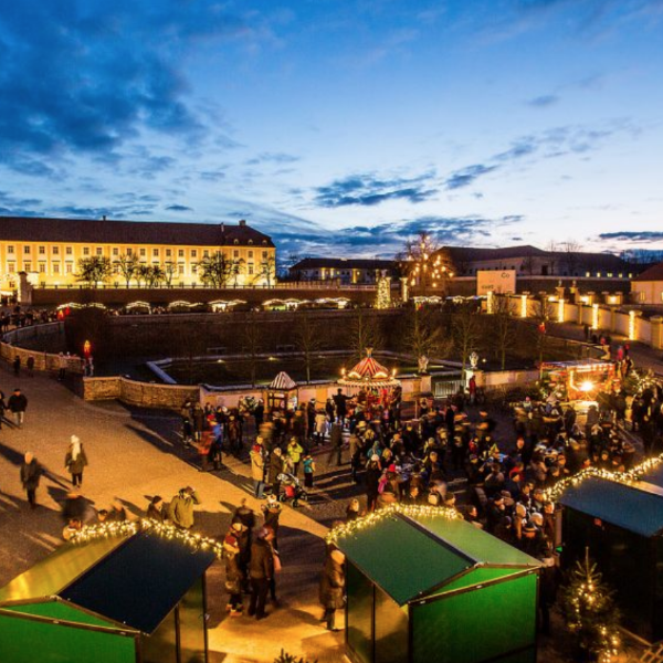 По выходным с 20 ноября по 19 декабря 2021 года, а также с 8 по 10 декабря 2021 года открытая площадка и оранжерея Schloss Hof с 10:00 до 19:00 час превращаются в волшебную рождественскую ярмарку с празднично украшенными хижинами, создающим настроение освещением, рождественскими звуками и запахом жареного миндаля и горячего пунша.
